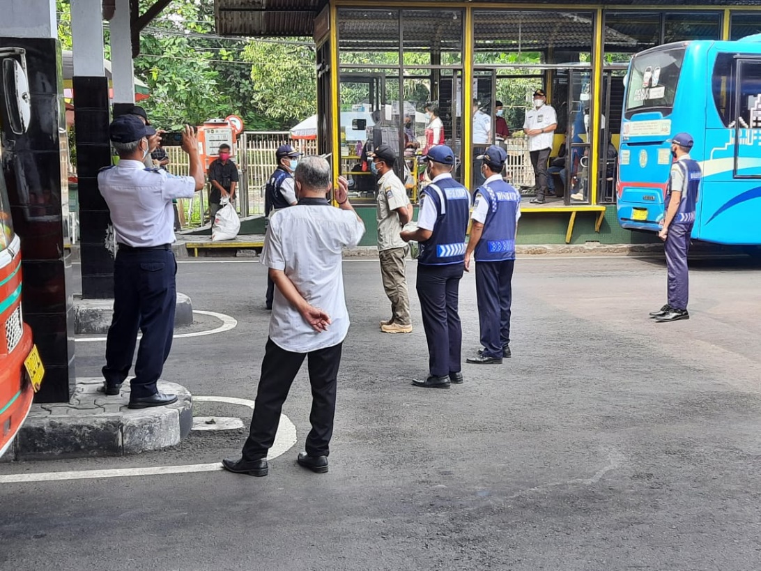 Kunjungan Komisi C di terminal Jombor tekait kegiatan PPKM dan Prokes dilingkungan terminal Jombor dilanjutkan dengan pembagian masker kepada penumpang dan agen bis.