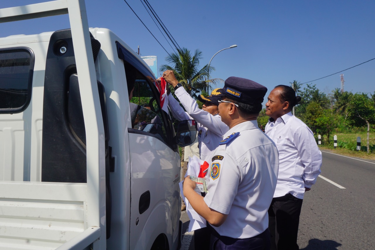 Selain penindakan, petugas memberikan teguran dan imbauan mengenai pentingnya uji berkala serta kelengkapan dokumen kendaraan. Momentum ini dirangkaikan dengan pemasangan sekaligus pembagian bendera merah putih kepada warga sebagai bagian dari Gerakan Pembagian Bendera Merah Putih yang dicanangkan secara nasional mulai 1–31 Agustus 2025.